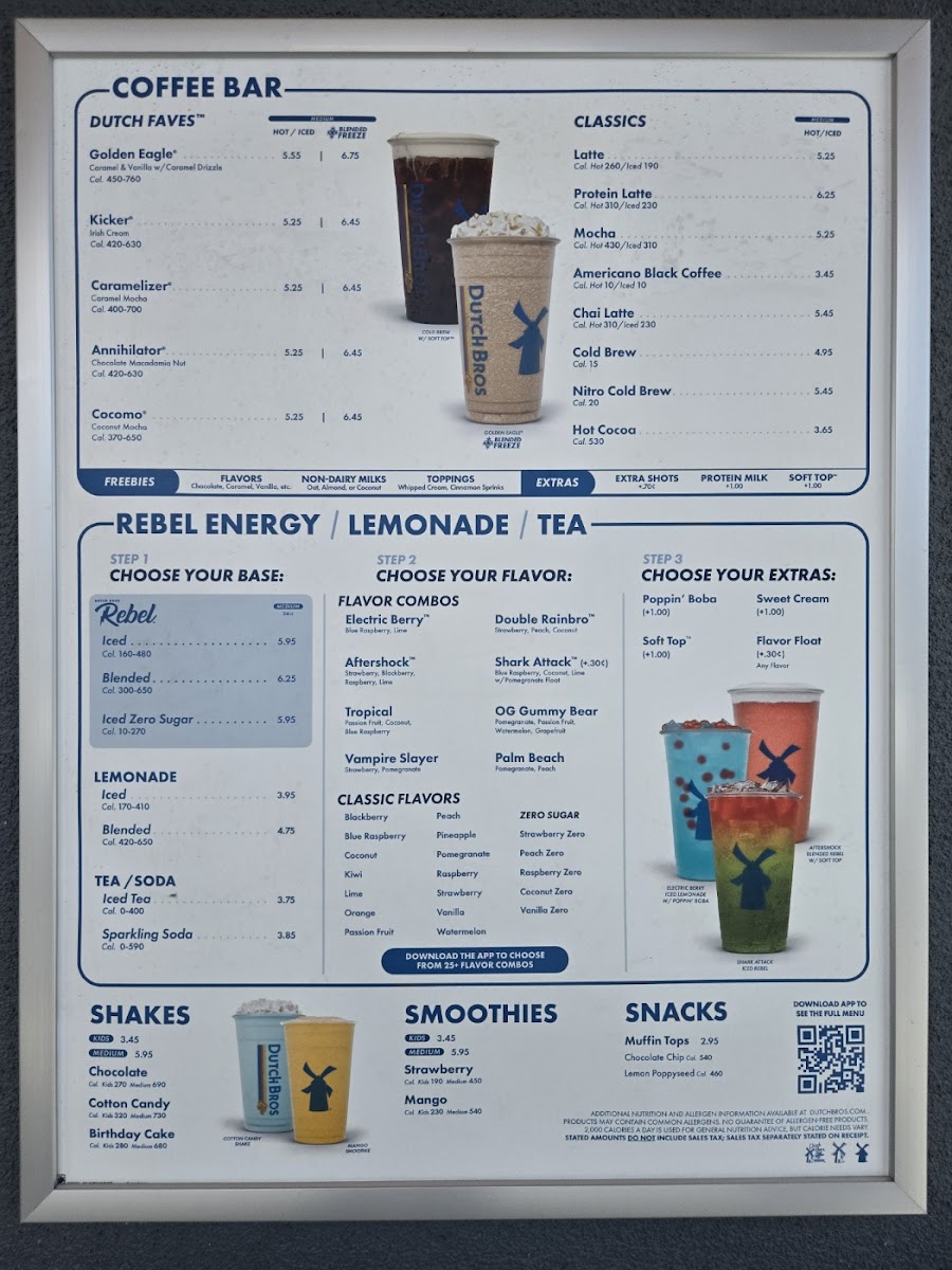 Creamy Espresso, Extra Double Shot Espresso, Vanilla & Chocolate Milk